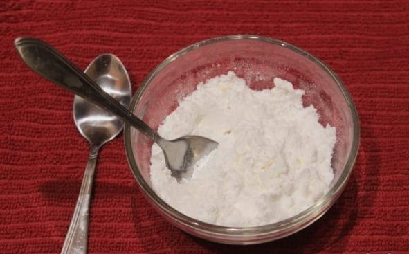 - Combineer poedersuiker, vanilline en citroenzuur in een diepe kom. Roer het droge mengsel.