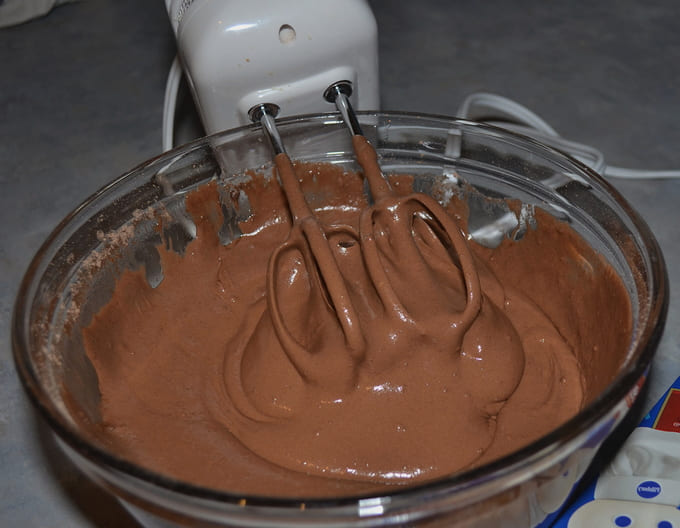 - Giet de resterende gecondenseerde melk erbij en blijf met een mixer werken tot een homogene luchtcrème is verkregen.