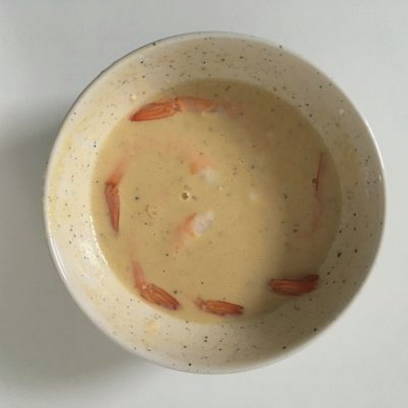 - Breek een ei in een kom, voeg zwarte peper en paprika toe. Klop het gekruide ei los met een vork of garde. Doop de garnalen in het mengsel.
