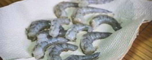 - Reinig de garnalen door de koppen en ruggenmergaders te verwijderen. U kunt de staarten verwijderen zoals u wilt. Spoel de garnalen onder stromend water om eventueel achtergebleven zand en vuil te verwijderen. Droog de zeevruchten af met een papieren handdoek of servet. Om de kooktijd te verkorten, kunnen de garnalen van tevoren worden bereid.
