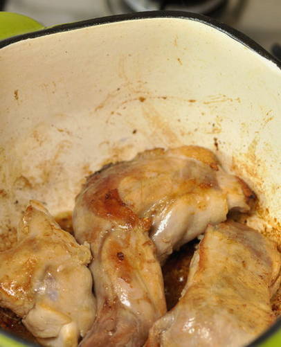 - Doe het konijnenvlees in de resulterende saus en laat het onder een deksel op laag vuur 1 uur sudderen.