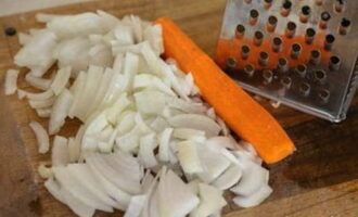 - Was en schil groenten. Hak de ui fijn, rasp de wortel. Snijd de aardappelen in middelgrote partjes.