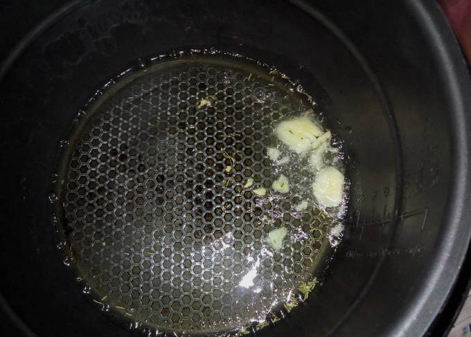 - Zet de multicooker aan, selecteer de "Fry" -modus gedurende 15 minuten, giet olijfolie in de kom. Plet de teentjes knoflook met de platte kant van een mes en fruit ze 1-2 minuten met rozemarijn en tijm. Haal deze ingrediënten vervolgens uit de kom.