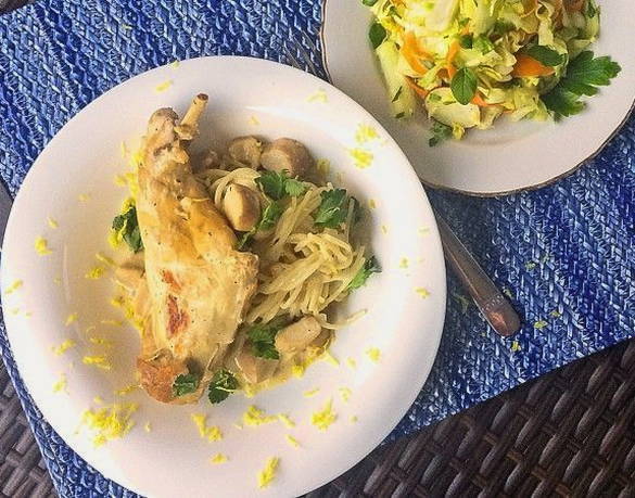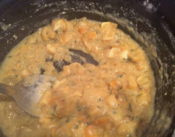- Sappig konijn gestoofd in zure room in een slowcooker
