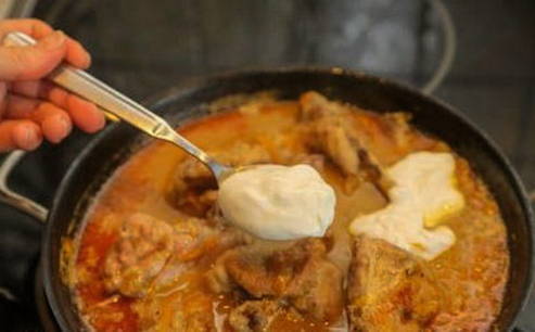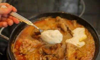 - Voeg vervolgens zure room toe en laat 15-20 minuten sudderen.