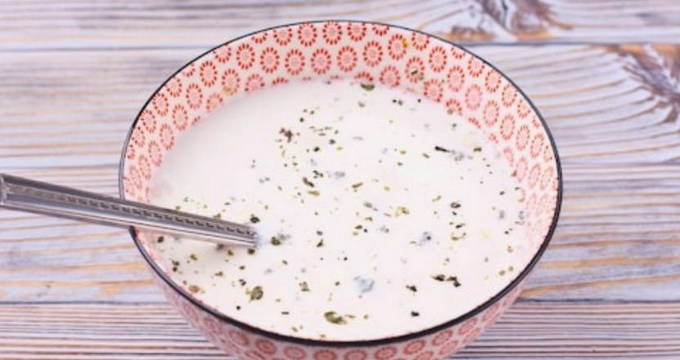 - Combineer zure room, water en kruiden in een apart bord. Roer tot een gladde massa.