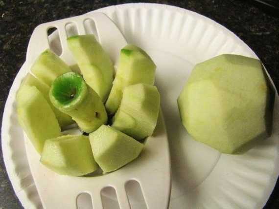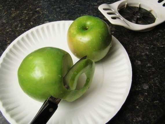 - We wassen de appels en verwijderen vervolgens voorzichtig de schil.