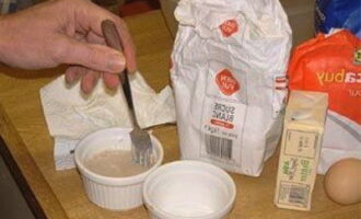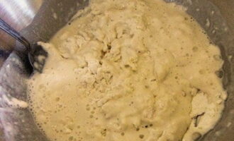 We verwarmen melk en dompelen er droge gist in. Roer en laat 15 minuten staan.