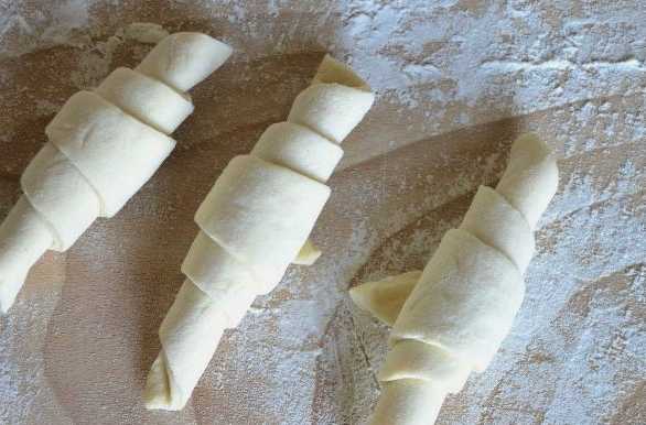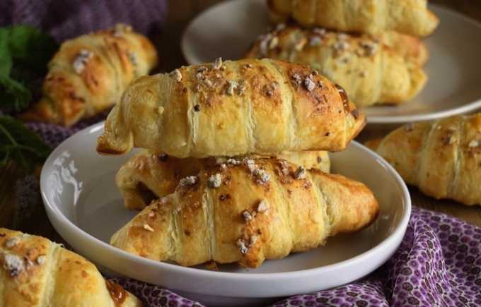 Croissant bladerdeeg is sneller en makkelijker te verwerken tot een product. Maar ondanks de afwezigheid van gist, komen de gebakken goederen weelderig en rossig uit. Het kan direct als dessert worden gebruikt of worden aangevuld met een smakelijke vulling.
