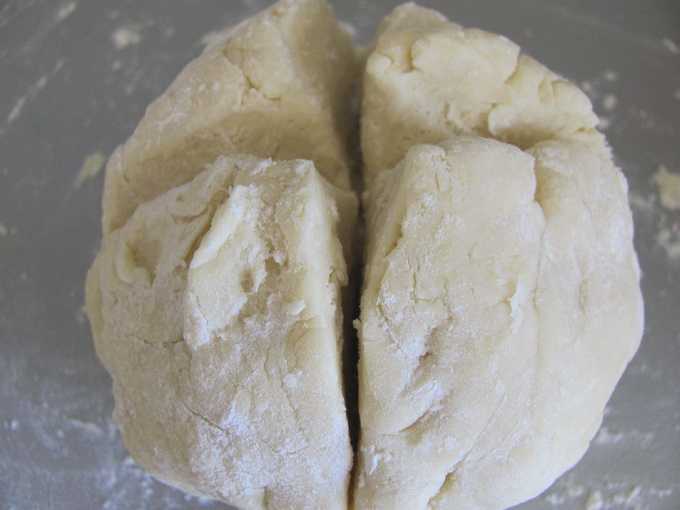 - Kneed het deeg lang en grondig met je handen tot je een dichte klont krijgt, die verder in 4 gelijke delen is verdeeld.