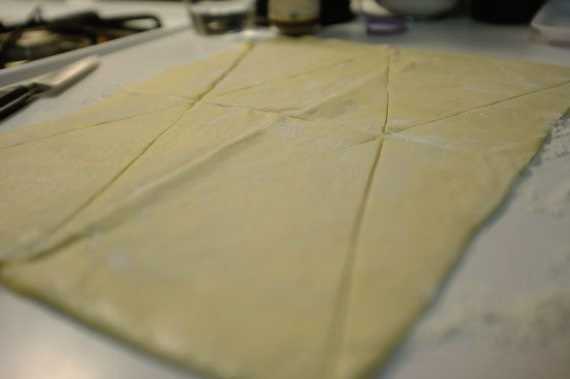 - Laat het deeg goed ontdooien en verdeel het dan in gelijke vierkanten.