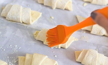 - Bestrijk elke croissant met het eiermengsel. Hierdoor wordt het product rooskleuriger.