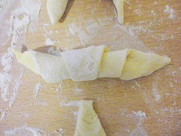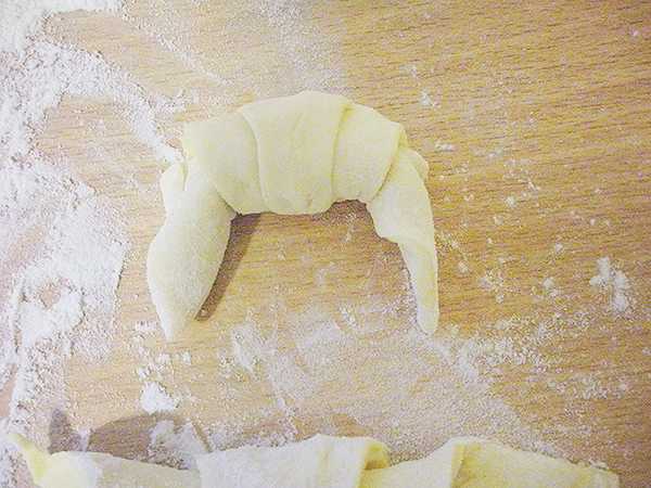 - Vorm met onze handen voorzichtig een boog van de croissant.