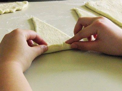 - Vorm met onze handen voorzichtig een boog van de croissant.