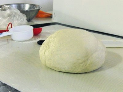 - Kneed het deeg lang en grondig met je handen tot je een dichte klont krijgt, die verder in 4 gelijke delen is verdeeld.