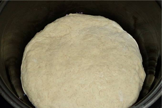 Kneed het deeg lang met je handen tot een gladde en zachte klont is verkregen. Daarna zetten we het 1-1,5 uur op een warme plaats.