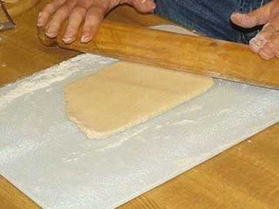 - We keren terug naar de proef. Het moet goed worden uitgerold met een deegroller tot een dunne staat.