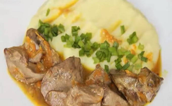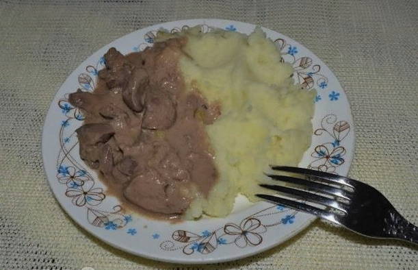 - Kippenlever met jus is klaar. Serveer voor jeugdherinneringen aardappelpuree als garnering.