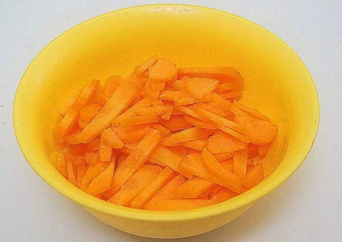 - We wassen de wortels, schillen ze met een dunschiller. Snijd in stukjes of drie op een rasp.