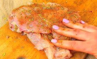 Kruid het vlees met zout en kruiden - wrijf aan beide kanten.
