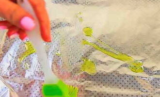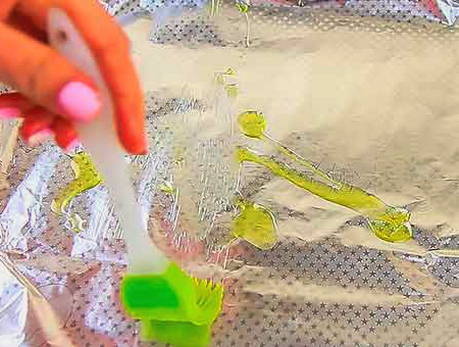 Bedek de bakplaat met folie of bakpapier en vet in met een beetje olie.