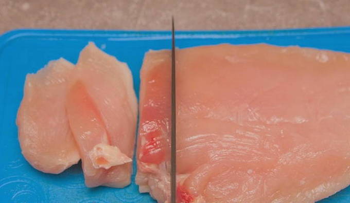 - Was de middelgrote borst grondig, droog en snijd in kleine stukjes.