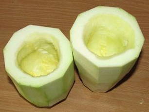 - We maken de jonge courgette schoon van het dichte schil- en zaadgedeelte - in stukjes gesneden.