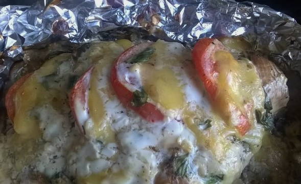 - Sappige en zachte kipfilet met tomaten, kaas en champignons