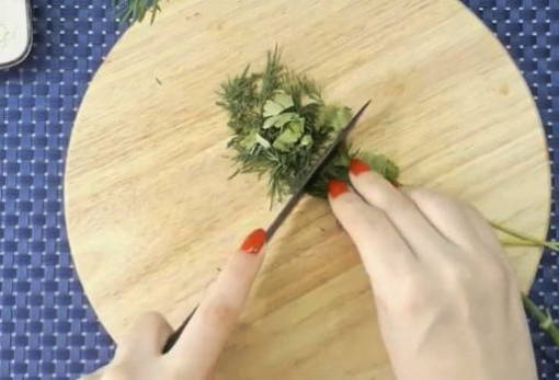 - Was de peterselie en dille. Snijd de stelen af en hak fijn.