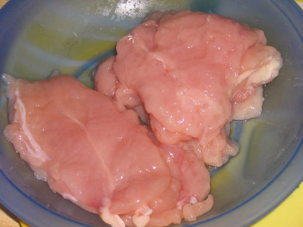 Spoel de kipfilet, scheid de filet van de botten (deze kunnen later worden gebruikt om kippenbouillon te maken). Snijd de kipfilet in 10 middelgrote stukken (meestal is dit de hoeveelheid die je krijgt van twee middelgrote kipfilets).