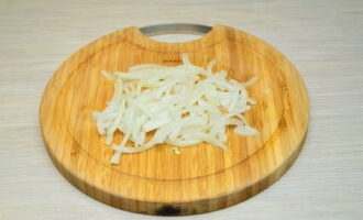 Pel de uien en snijd ze in dunne halve ringen.