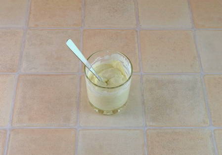 - Meng in een aparte container 100 gram zure room met nootmuskaat.