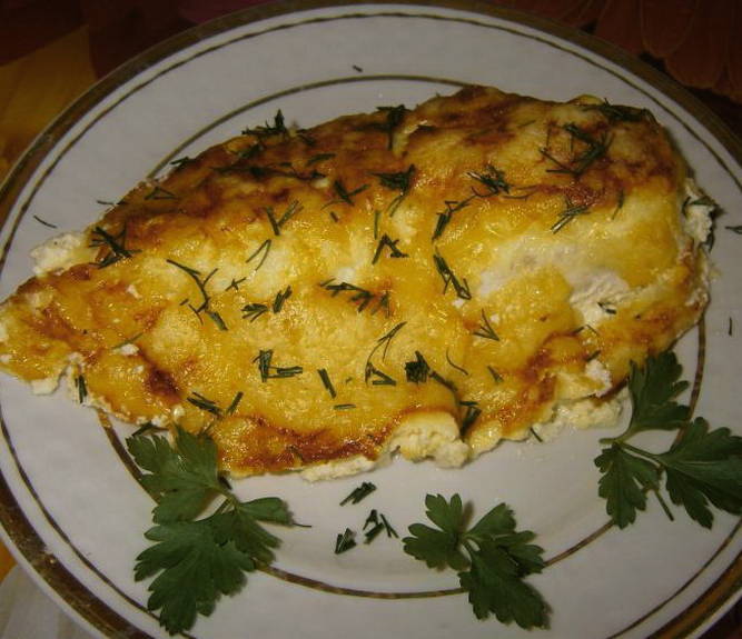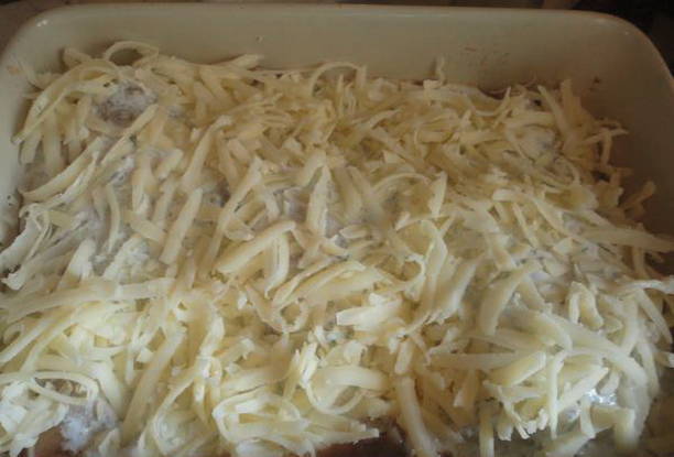 Maak om te beginnen een saus van zure room, knoflook, zout en peper. De kipfilet wordt in een ovenschaal geplaatst en over het voorbereide mengsel gegoten. Bestrooi alles met geraspte harde kaas en bak 55 minuten in de oven.