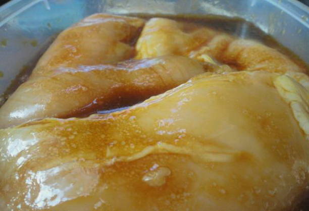 - Vul de kipfilet met de resulterende marinade en laat deze minimaal 15-30 minuten marineren. Als je het langer dan een uur marineert, wordt het vlees rubberachtig.
