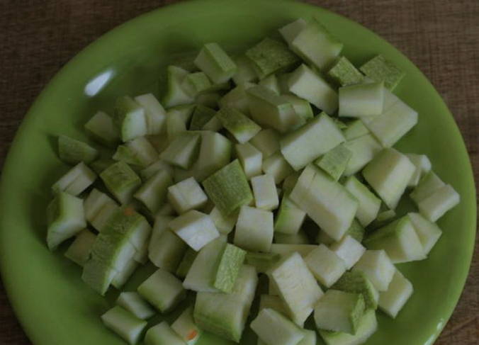 - Snijd de courgette op dezelfde manier.