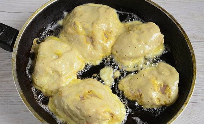 - Hoe kippendijen in beslag in een pan bakken?