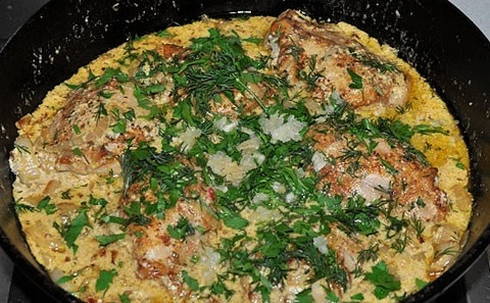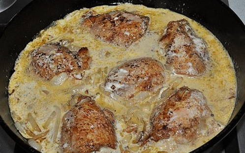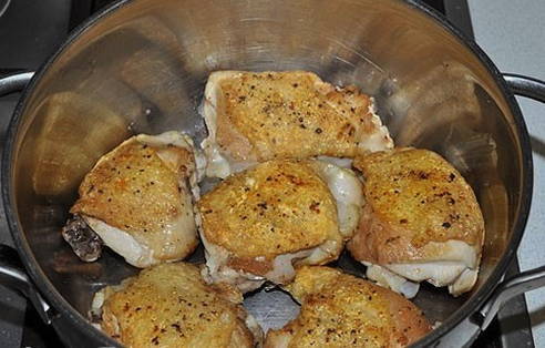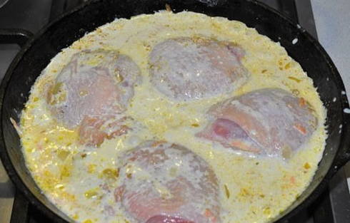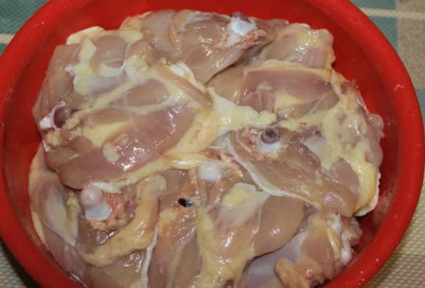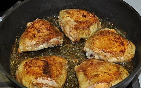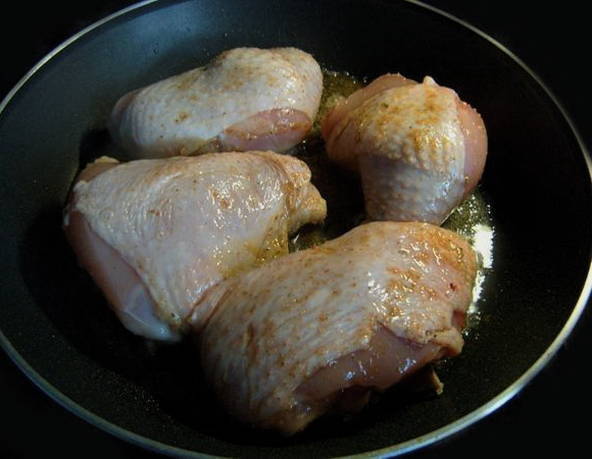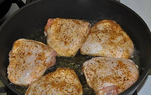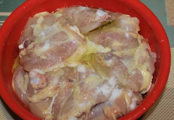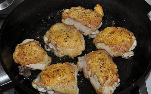 - Stapsgewijs recept voor het koken van kippendijen in mayonaise in een pan