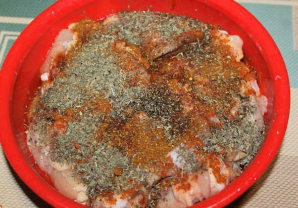 - Vul vervolgens de blanco met droge kruiden. Hun hoeveelheid kan naar smaak worden aangepast.