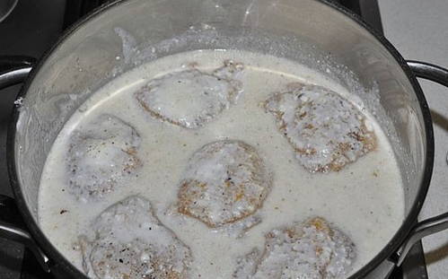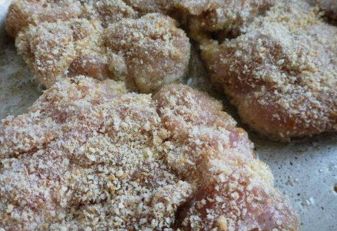 Hoe kippendijen in beslag in een pan bakken?