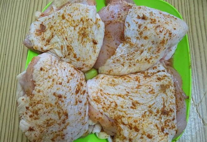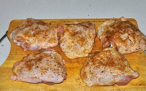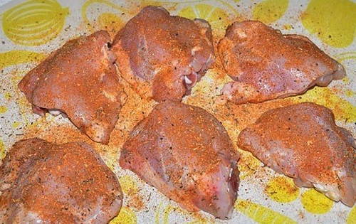 - Wrijf de kippendijen goed in met zout en aromatische kruiden naar smaak.
