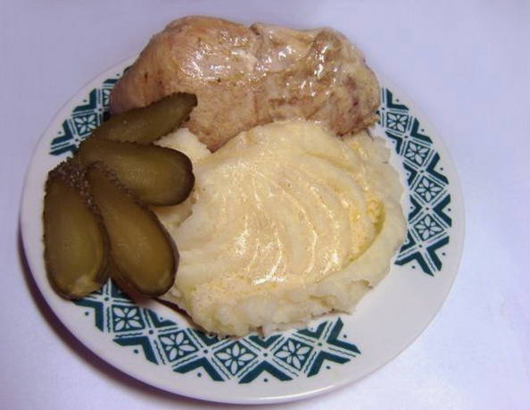 - Sappige kippendijen met jus zijn klaar. Serveer ze met garnituur en augurken.