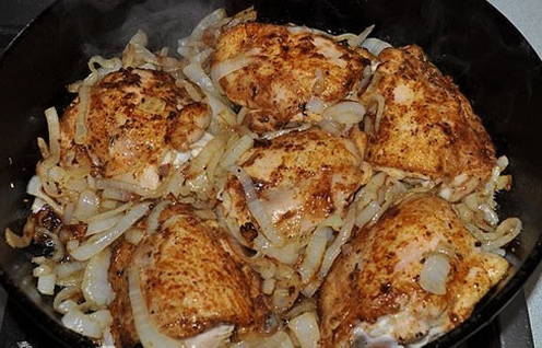 Sappige kippendijen met een rijke uiensmaak zijn gemakkelijk thuis te koken in een koekenpan. De voedzame traktatie kan worden geserveerd met bijgerechten. Geniet van een culinaire oplossing voor uw familiemaaltijd.
