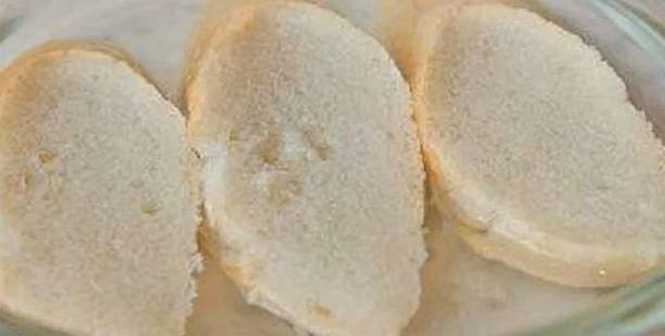 - Snijd het witbrood in sneetjes en verwijder de korstjes. Week het brood in koud water en laat het zacht worden. Breng de pulp zonder te wringen over in de blenderkom met de rest van de ingrediënten.