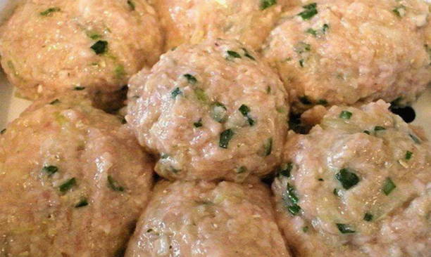 - Vorm kleine pasteitjes en plaats in een dubbele boiler. Bevochtig uw handen met water bij het vormen van de werkstukken, zodat het gehakt niet blijft plakken.
