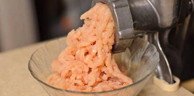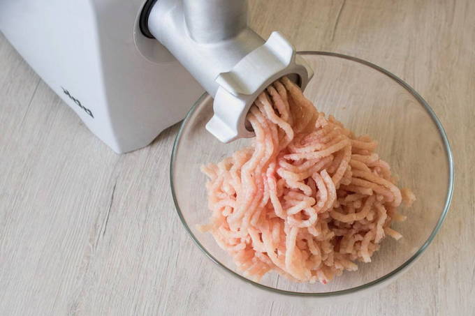 - Was kippenvlees grondig, dep droog met servetten of keukenpapier. Verdeel het stuk in middelgrote stukken. Maak van bereide filets gehakt met een vleesmolen of keukenmachine.