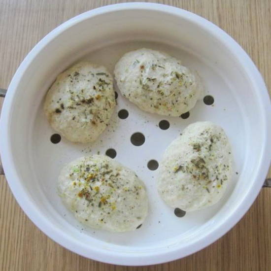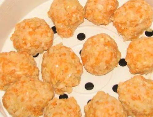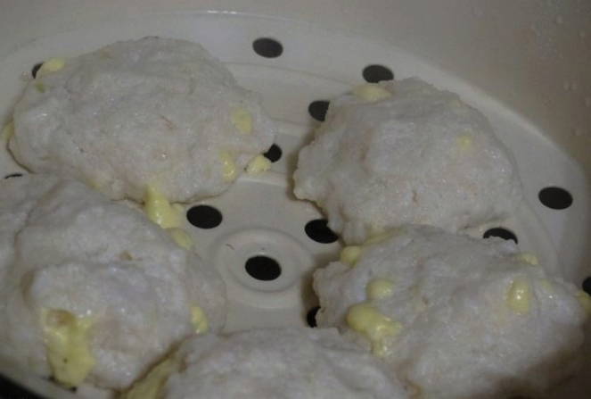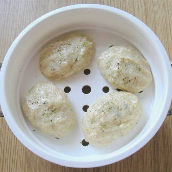 - Vorm kleine ronde pasteitjes. Leg ze in een stoompan of in een speciale multicookerschaal, met een kleine afstand ertussen.