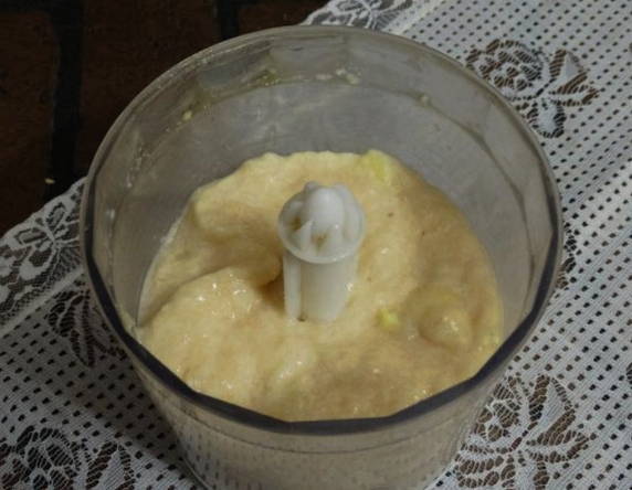 - Voeg zout toe en gebruik een blender om alle ingrediënten tot een gladde pasta te maken. Het gehakt moet heel klein blijken te zijn, zoals pap.