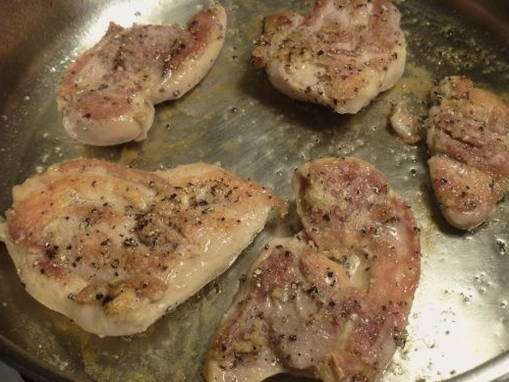 - Smeer de pan in met plantaardige olie, verwarm deze en bak de filetstukjes. Vergeet niet om zout aan de kip toe te voegen.