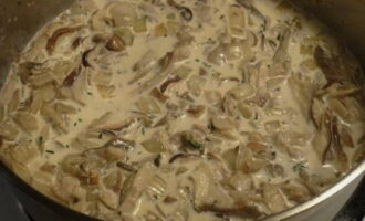 - Om de saus een beetje in te dikken, moet je de room verdampen. Om dit te doen, zet u het vuur lager en dek het deksel niet volledig af. Na 5 minuten is het gerecht klaar. Serveer met aardappelpuree.