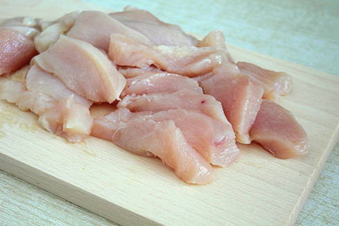 - Was de kipfilet en verwijder overbodige films. In kleine stukjes snijden.